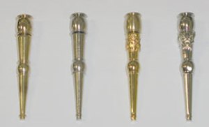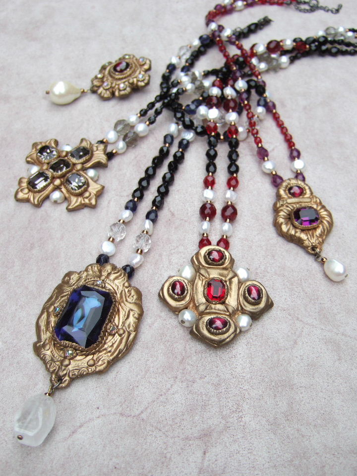 Outros pingentes – Pingentes podem ser presos em pérolas, correntes ou fitas em volta do pescoço, ou até mesmo presos a chapéus, vestidos e cintas. Cruzes, jóias e medalhões (conhecidos como “tablets”) eram pingentes muito populares.