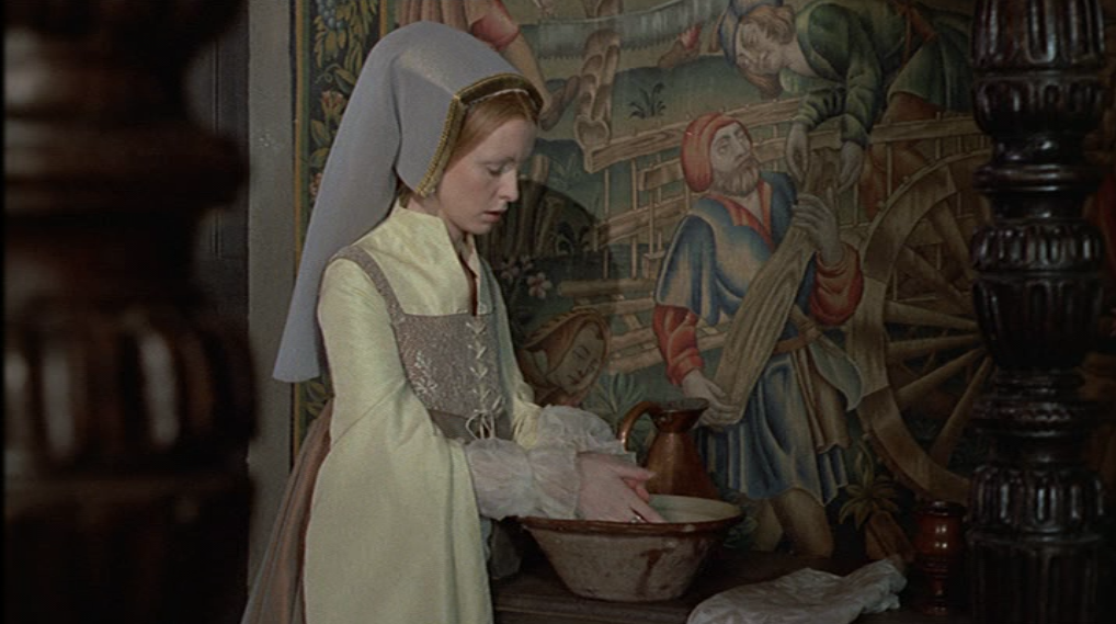 Jane Seymour higienizando suas mãos no filme Henry VIII and his six wives de 1972 da BBC.
