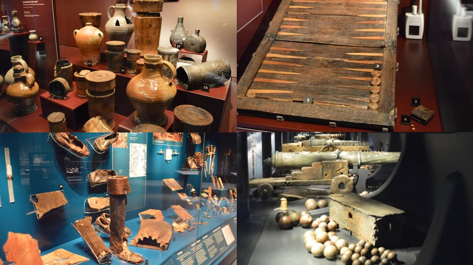 Todo artefato mostrado aqui é uma peça original encontrada no navio naufragado. Alguns dos canhões ainda estavam saindo das portinholas, quando foram descobertos, em 1971.