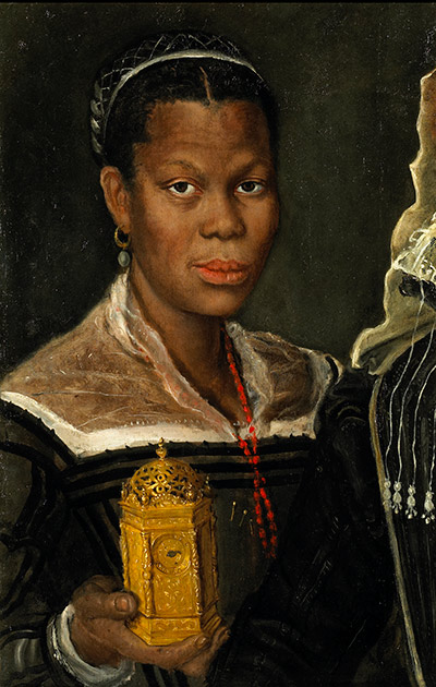 Desde os primeiros anos do século XVI, haviam africanos tanto nas Cortes Tudor, quanto Stuarts. A esposa espanhola de Henrique VIII, Catarina de Aragão, havia trazido em sua companhia rumo à Inglaterra, alguns serviçais africanos quando foi casar-se com o príncipe Arthur, em 1501. Um destes serviçais foi o trompetista ironicamente chamado John Blanke (blanco, branco), que foi pago por seus serviços por um dia e retratado duas vezes no Grande Torneio chamado ”Roll of Westminster (1511)”. Em 1523 foi registrado que Fraunces Negro trabalhou em estábulos da Rainha.