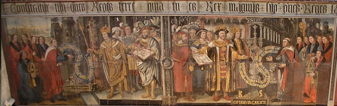 O retrato fala sobre a proteção Real que a Catedral recebeu, após a dissolução dos monastérios e rompimento com Roma. Um dos principais veículos para a tal renúncia, foi o divórcio do monarca, com sua então primeira esposa, a espanhola Catarina de Aragão, cujo o matrimônio, havia sido selado e permitido pelo Vaticano, por volta de 20 anos antes. Mas o que Catarina de Aragão tem a ver com tal macaco?