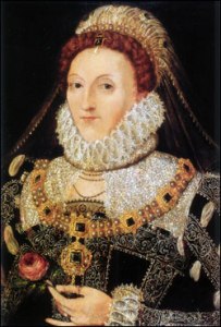 Elizabeth Retrato Frontispício do Atlas Saxton (1579).